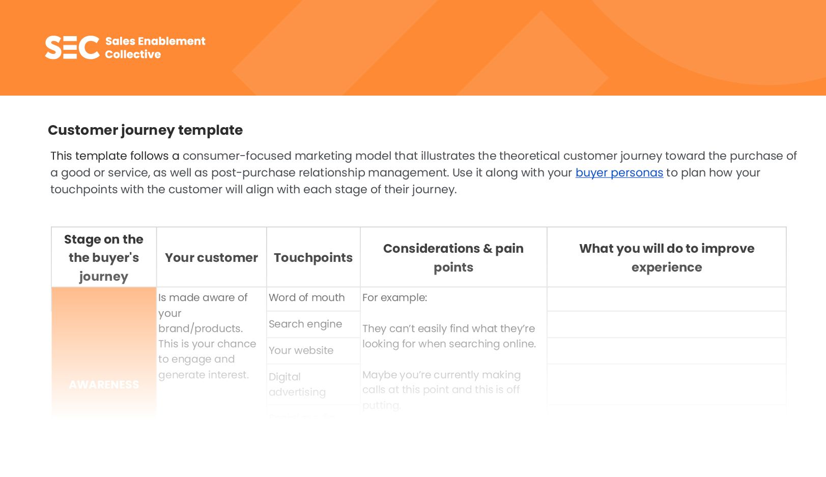 For enablement, and your company as a whole, laying out the customer journey like this helps to: