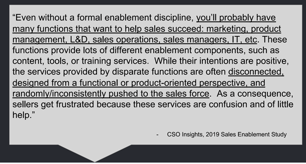 "Enablement needs to be the architect and the filter of all of that information. That's exactly how you align to the business. It's how you work with those other departments."