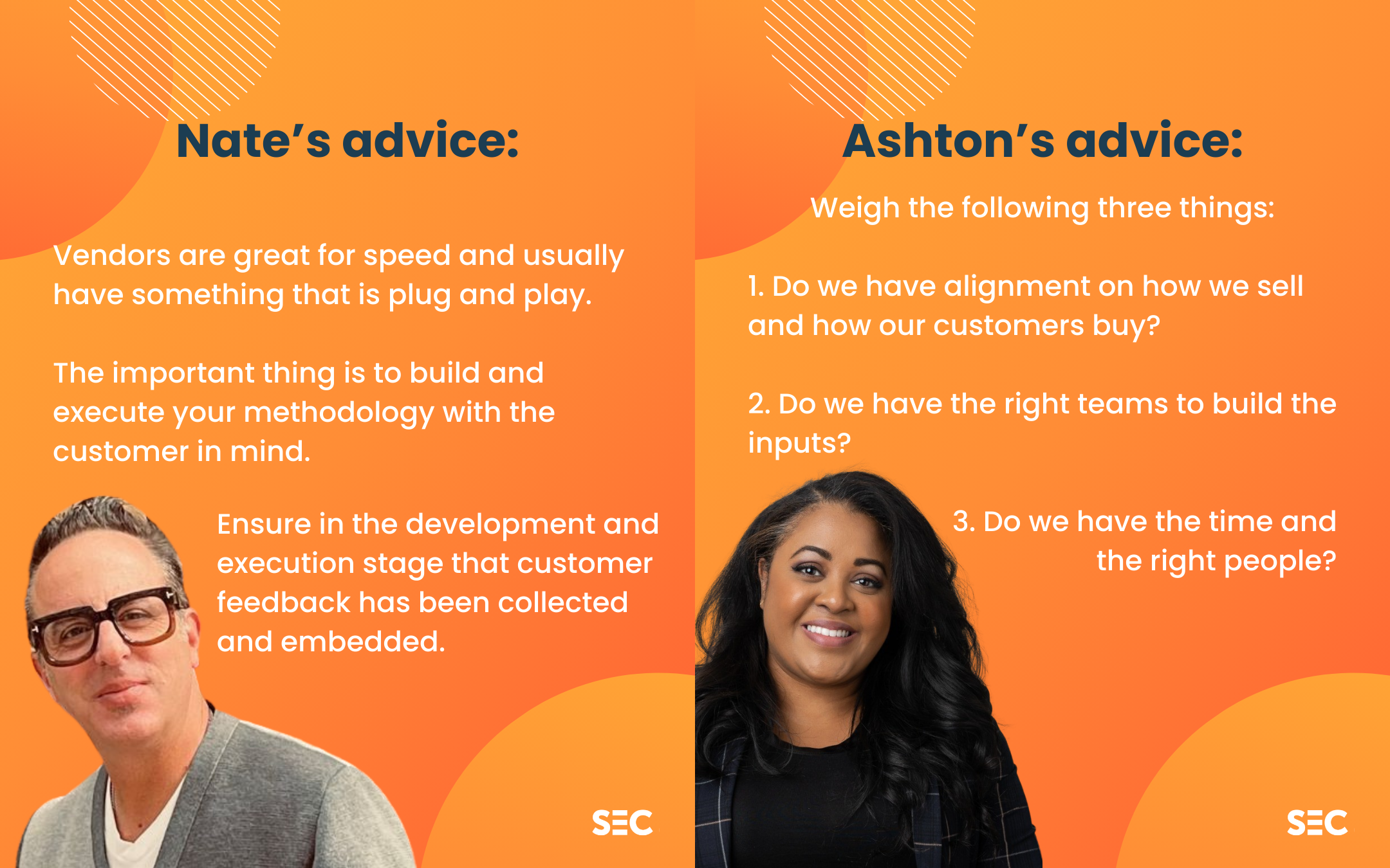 In relation to whether the methodology should be built in-house or if external vendors should be leveraged, Nate adds: