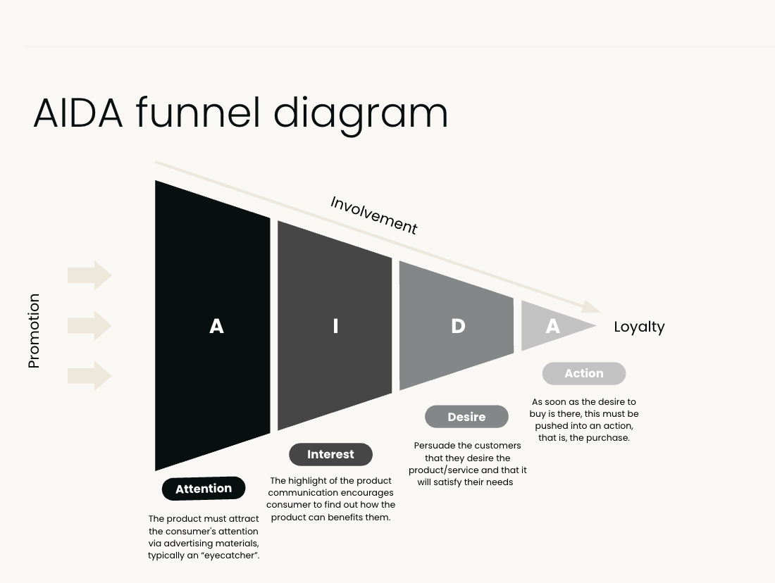 An AIDA template is a structured tool that helps you plan and track how prospects engage with your brand across the four core stages of the customer journey: