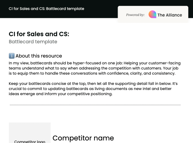 By following these steps, you'll create comprehensive and effective CI battlecards that empower your sales and customer success teams to win more deals and better serve your customers.