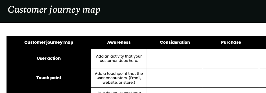 Broken into five distinct sections, it outlines the various stages a customer goes through in their journey (from initial awareness to post-purchase loyalty), and maps out every interaction and touchpoint along the way.