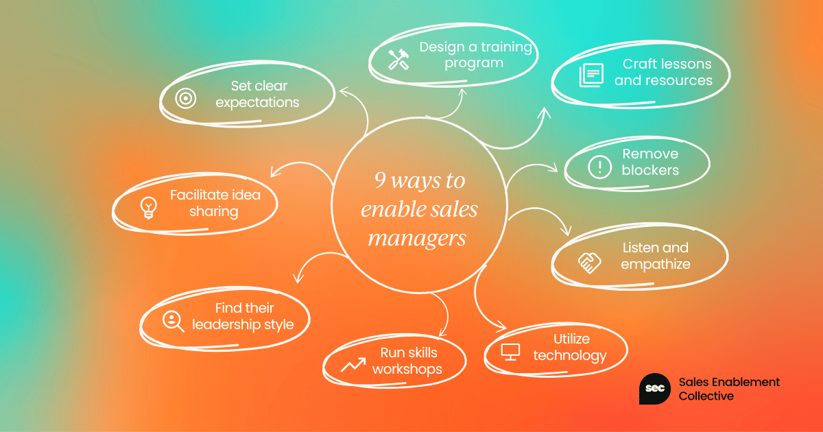 By focusing efforts on sales managers, enablement teams can train their managers to become influential sales coaches and advocates for training programs, while improving their communication skills.