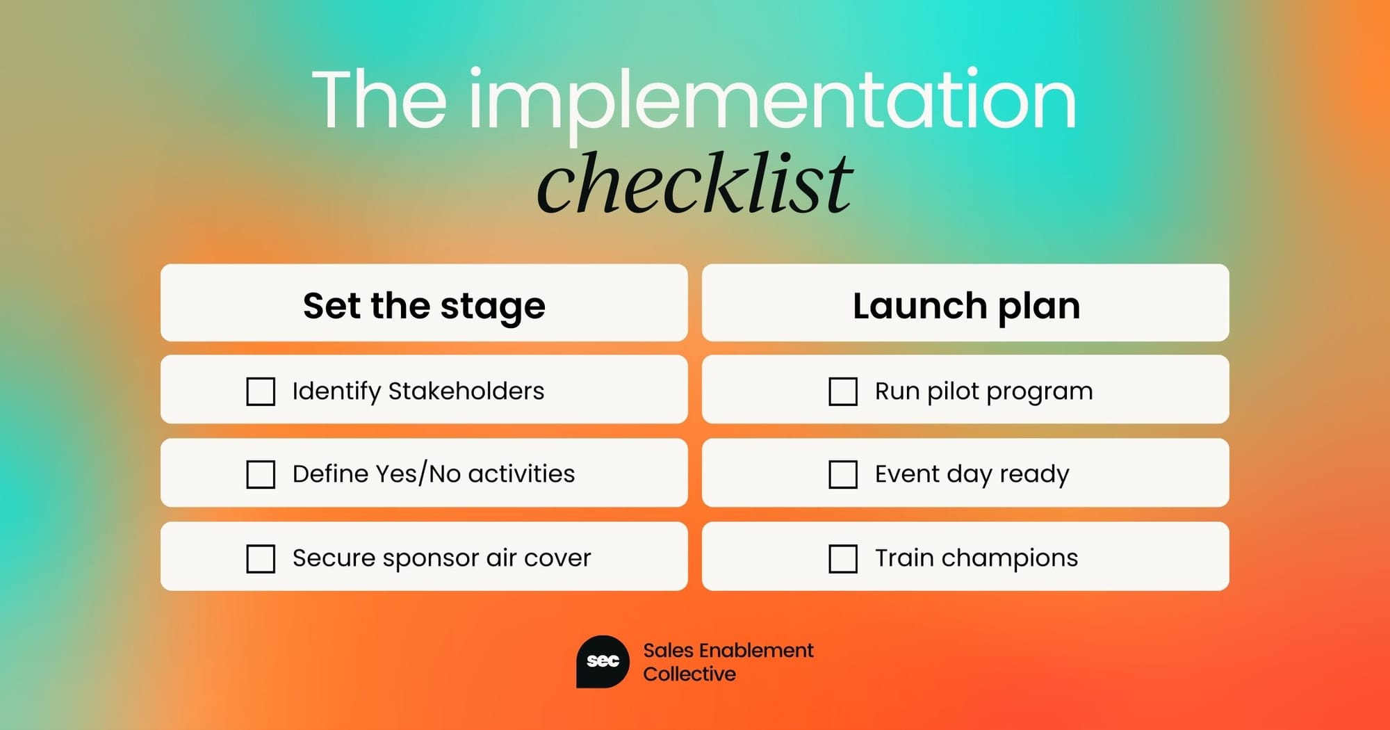 Again, it's all invented. Pick a day – launch day. Even if it's something you've been doing for a while. "January 2nd, 2026, is the launch of the new onboarding certification." Talk to your sales leaders who you've got in a coaching program. "March 6th is the beginning of our new certification, and we want you to be involved in that." Pick a day.