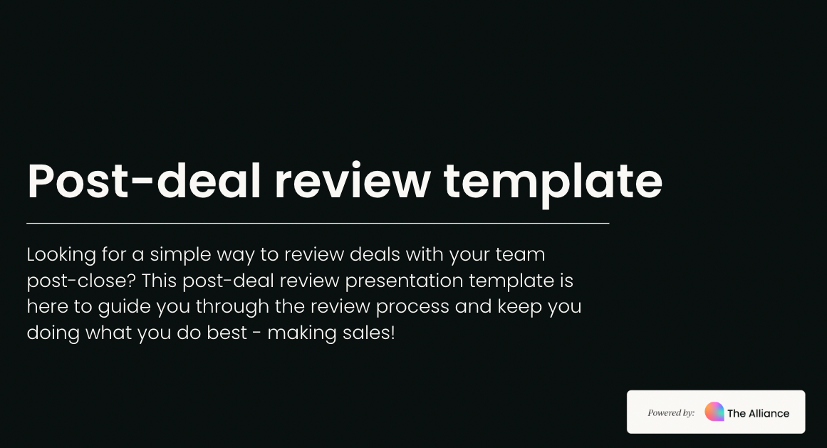 This template provides a structured approach to reviewing your deals, covering: