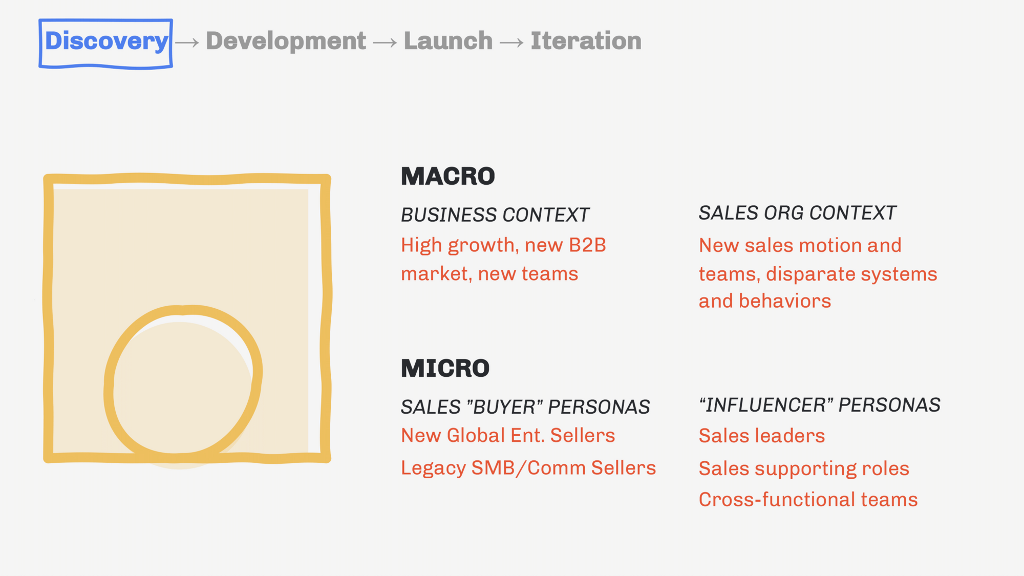 Using the personas, we figured out what the differences were. A really obvious one, our global enterprise sellers, were really used to this value-based selling process idea, our commercial and small sellers, were not used to that.