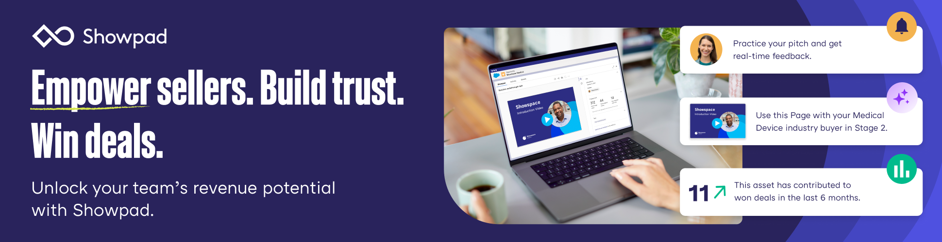 Showpad is an all-in-one AI-powered solution where marketing and revenue teams come together to empower sellers with content and training to engage buyers — and to add meaningful value during every interaction. Get a firsthand look at how revenue teams are scaling success at our in-person workshop series, Excellence in the Field.